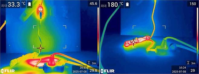 소방당국의 실증 실험에 따르면, 10A 규격의 멀티탭에 2800W급 에어컨을 연결한 지 단 12분 만에 전선 온도는 180도까지 치솟으며 화재가 발생했다.
