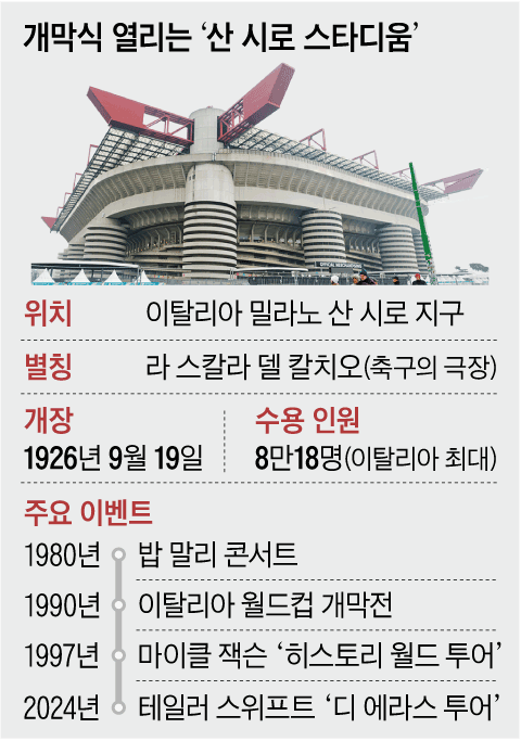 [밀라노 라이브] 대형 조각상과 雪山 세트… 100년 축구 성지에 ‘르네상스’ 펼친다