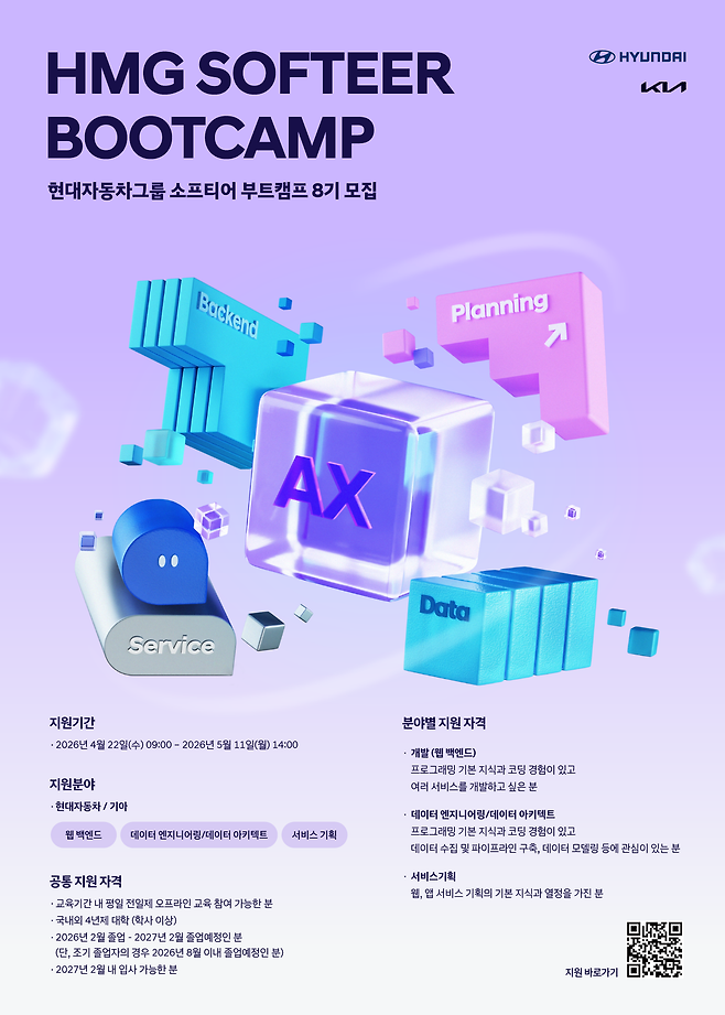 현대자동차·기아가 소프트웨어 분야 채용 연계 교육과정 '소프티어 부트캠프'를 AI 퍼스트 체제로 전면 개편하고 8기 모집에 나섰다.