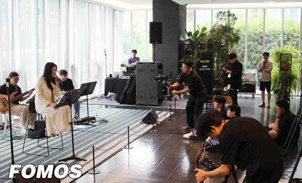 넥슨 사옥 1층에는 IP 전시, 게임 배경음악(BGM) 감상 공간, 게임 OST를 주제로 한 밴드, 첼로 연주단의 버스킹 공연, 포토존이 마련됐다.