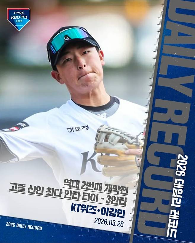 공격에는 큰 기대를 걸지 않는다고 했던 그 고졸 루키가 개막전에서 3안타를 때려냈습니다. 심지어 생중계 중에 역대 달성 기록을 확인하면서 더 놀랐습니다. 장성호 해설위원의 1996년 고졸 루키 개막전 3안타 이후 무려 30년 만의 기록이었기 때문입니다.