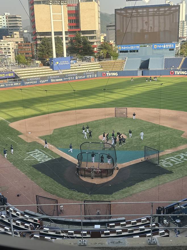 그리고 4월 13일, 창원에서는 제 이동 동선이 꼬이는 바람에 이강민 선수와 경기 전에 마주치지 못했습니다. 그런데 그 경기에서 이강민 선수는 2회에 병살타를 치고 바로 교체가 됐습니다.