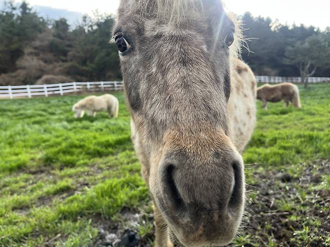 그리고 드디어 경주를 뛰는 그날, 이제 열 살도 넘는 녀석을 정말 오랜만에 다시 보았다. 세월이 얼마나 흘렀는지, 예전에는 온통 어두운 색이었던 몸의 털이, 이제 제법 희끗희끗해져서 몽글몽글한 무늬의 흰털이 더 많이 보이는 회색말로 변해가고 있었다. 딱 나이가 든 제주말의 모습이다.