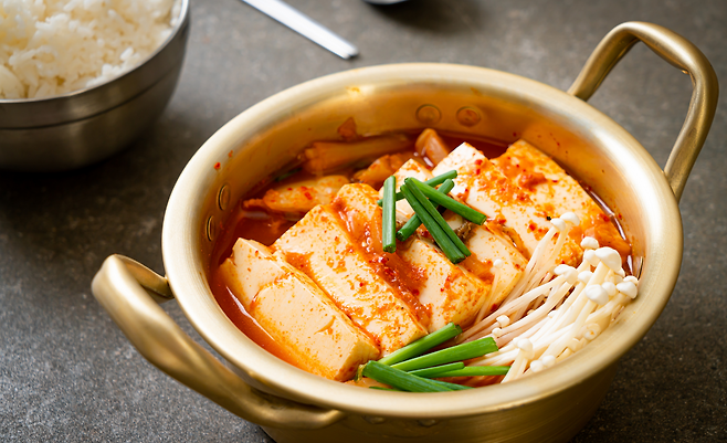 고기 대신 두부를 넉넉히 넣으면 담백하면서도 든든한 김치찌개가 완성됩니다. 두부는 식물성 단백질이 풍부해 포만감을 오래 유지시켜주고, 칼슘도 많아 뼈 건강에도 도움이 됩니다. 익히기 전에 살짝 구워 넣으면 식감이 더 살아나고, 국물에 고소함이 배어들어 더 맛있게 즐길 수 있습니다.
