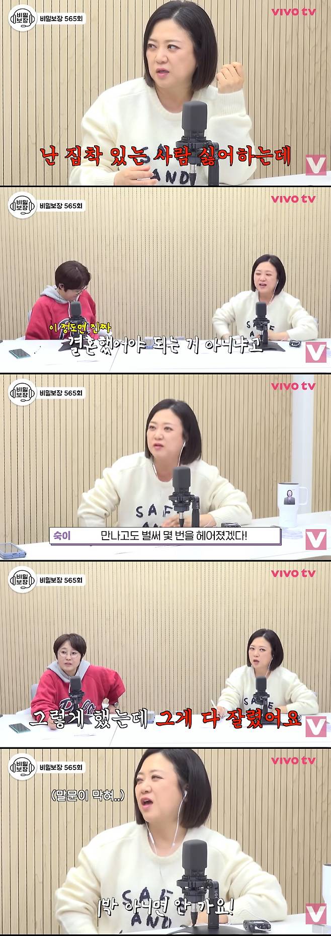 송은이는 "너 프러포즈 한 거냐"고 짚었고 김숙은 "이 정도면 만나자. 만나고도 몇 번을 헤어졌겠다"고 밝혀 웃음을 안겼다.