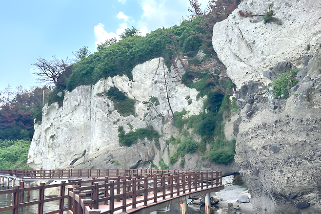 처음 만나는 선바우 일대는 현무암질 화산활동으로 형성된 어두운 암석이 주를 이룬다. 그런데 몇 걸음만 더 가면, 전혀 다른 풍경이 펼쳐진다. 힌디기 구간에 들어서는 순간, 바위는 완전히 하얗게 변한다. 이곳은 유문암질 화산재가 쌓여 만들어진 지층이다.