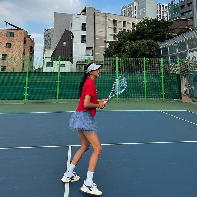 전미라가 인스타그램을 통해 공개한 테니스 코디가 눈길을 끈다. 도시적인 배경의 야외 코트에서 라켓을 든 그녀는 레드 티셔츠와 블루 체크 미니스커트로 발랄하면서도 기능적인 스포츠웨어 스타일을 완성했다. ‘가볍고 시원하다’는 자평처럼 여름 운동에 제격인 원단감과 컬러 매치는 보는 이들의 관심을 모았다.