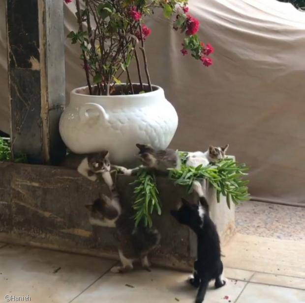 화분 위에서 자고 있는 아기 고양이 역시 랑랑의 새끼로 할머니는 녀석에게 헬렌이라는 이름을 지어줬다.