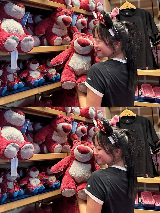 포인트는 뭐니 뭐니 해도 머리띠다. 테마파크를 찾은 많은 이들이 선택하는 아이템이지만, 신유빈은 다소 단조로울 수 있는 블랙 상의와 함께 스타일링하면서 오히려 머리띠의 귀여움을 극대화했다. 얼굴에 손을 얹고 살짝 찡그린 표정까지 더해지면서, 이 룩은 단순한 코디를 넘어서 하나의 콘셉트가 되었다.