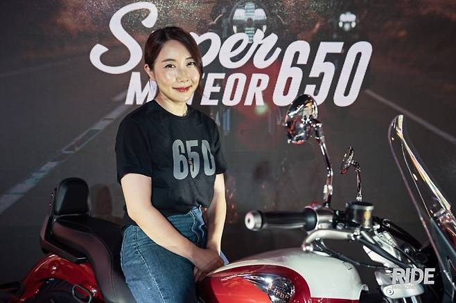 로얄엔필드 슈퍼메테오 650 론칭 행사는 오정연 씨가 맡았는데, 오정연 씨는 로얄엔필드의 클래식 500으로 바이크에 입문한 라이더이며 모터사이클 브랜드에 대한 이해도가 높아 라이더들이 사용하는 전문 용어를 능숙하게 전달했다. 특히, 베일을 벗은 슈퍼메테오 650에 올라타 RPM을 올리는 퍼포먼스는 현장에 모인 기자들의 탄성을 자아냈다. “대학 시절부터 라이딩을 즐기던 친구들을 부러워했었던 기억이 있다. 삼십 대 중반에 로얄엔필드 클래식 500으로 라이더가 되기로 한 결심은 그때의 부러웠던 기억 때문”이라며 로얄엔필드에 대한 애정을 드러냈다.