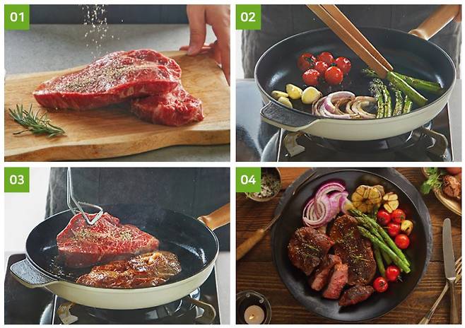 이는 내 그릇된 편견인 게, 사실 나보다 양식을 먼저 접한 분들이 바로 부모님 세대다. 멀게는 경양식집에서 돈까스와 스프를 먹은 것부터 레스토랑과 패밀리 레스토랑까지, 그들도 나름대로 화려한 과거를 보냈던 사람들이었던 것이다. 그때 그 시절을 추억하는 이들에게 딱 맞는 MZ세대 스타일 캠핑 메뉴가 있다. 바로 스테이크다.