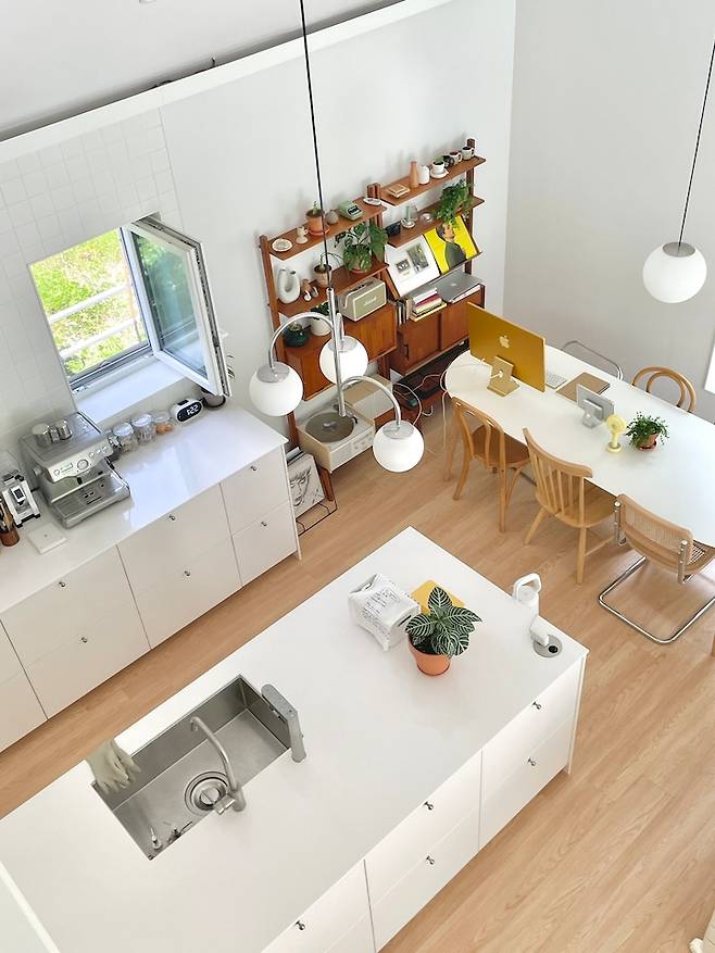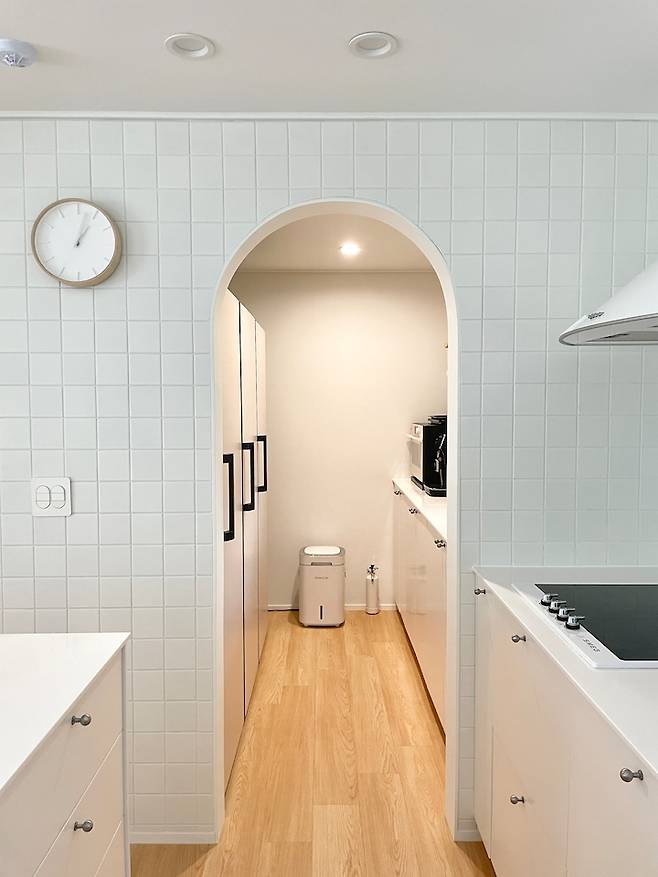주방 공간은 아내 혼자만의 공간이 아닌 가족 모두가 함께 사용하는 공간이라고 생각해서 넓직하게 만들었어요. 세 식구가 함께 요리도 하고, 집안일도 하며 소소한 일상을 즐겁게 보내고 싶은 마음이에요.