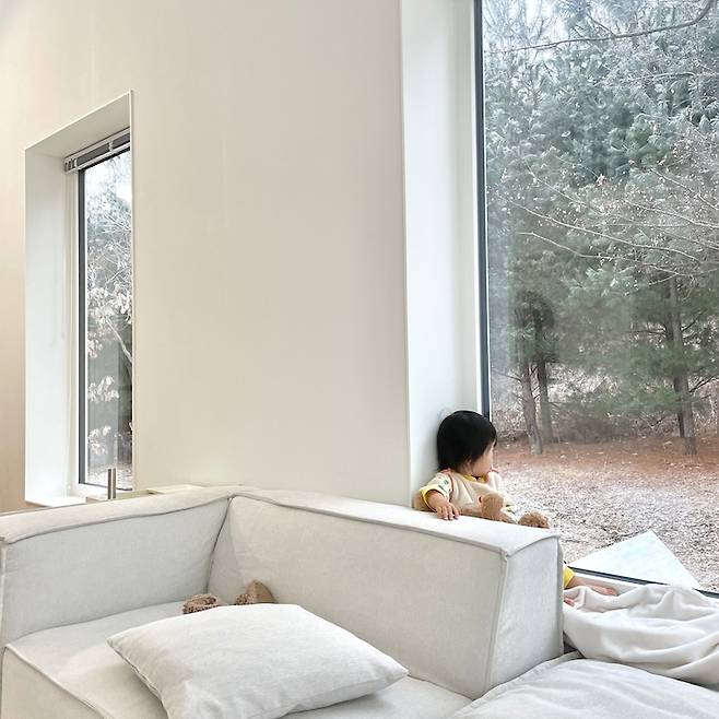 소파 뒤 창틀은 아이가 좋아하는 작은 공간이에요. 창틀에 앉아 창밖 구경을 하며 자연과 흥미를 가지는 모습을 볼 때 흐뭇해져요.