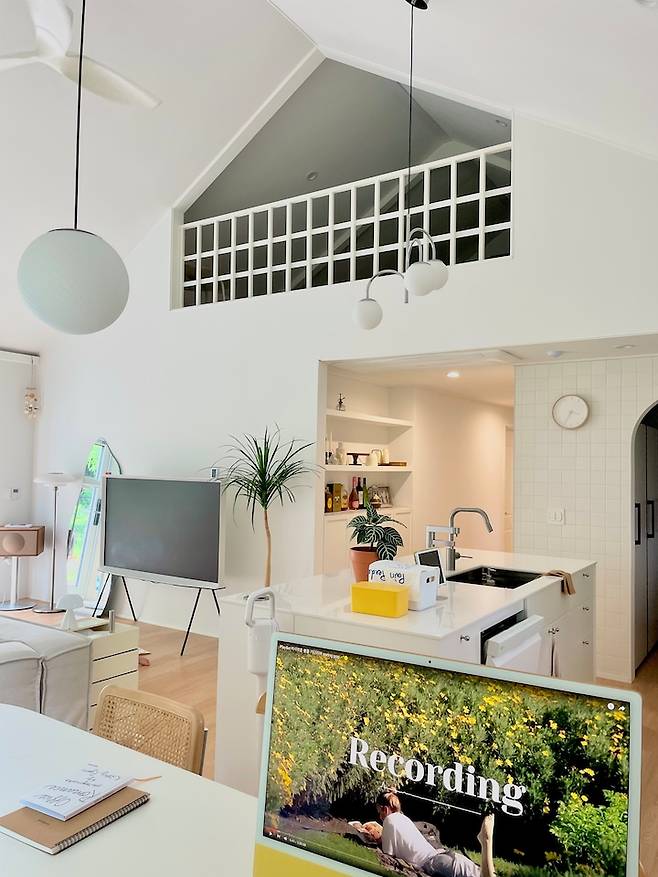 층고가 높아서 조명을 어떻게 구성해야할지 어려웠어요. 매립등을 너무 많이 넣는게 제 취향이 아니기도 하고 나중에 교체할 때 어려울 거라 더 고민이 많았네요.