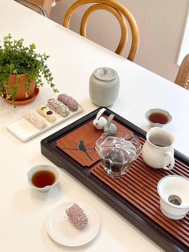 이렇게 완성한 저희 집 다이닝 공간에 앉아 차를 마시는게 바쁜 일상의 쉼표처럼 느껴져요.