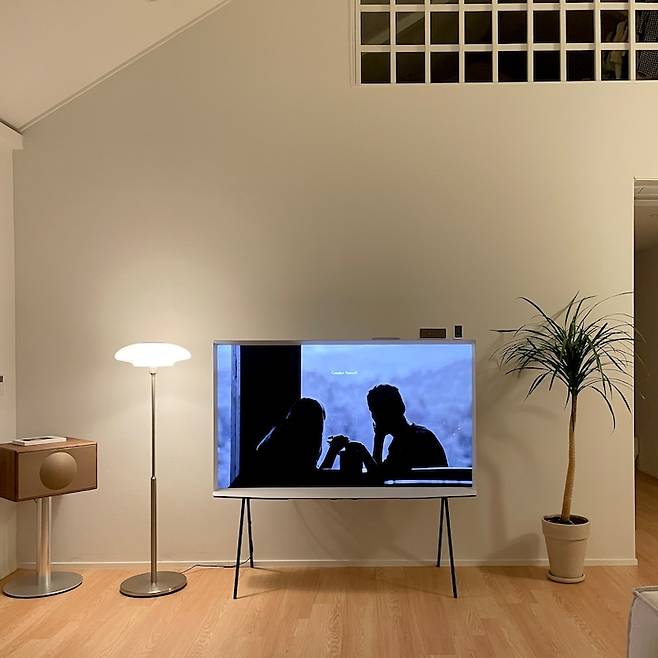집 구조의 변경을 좋아해서 붙박이장도 하지 않았기 때문에 벽걸이 티비 또한 원치 않았어요. 셰리프 티비는 블랙 앤 화이트의 깔끔한 디자인도 마음에 들고 이리저리 옮길 수 있어서 고민 없이 골랐네요. 뒤에 선 정리가 조금 어렵긴 하지만 만족스러워요.