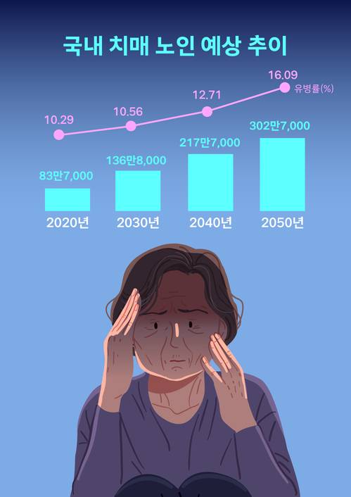치매는 사회·경제적 부담이 매우 큰 질환으로 꼽힌다. 보건복지부 '치매 관리 주치의 시범사업' 통계를 보면 2023년 기준 의료비·간병비 등 치매 환자 1인당 연간 관리 비용은 약 2200만원에 달했다. 복지부가 2020년 발표한 '제4차 치매관리종합계획'에 따르면 2050년 국가 치매 관리 비용은 약 103조1000억원으로, 국내총생산(GDP)의 약 3.8%에 달할 전망이다.