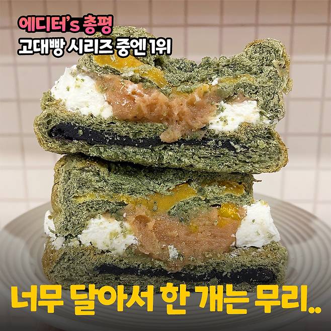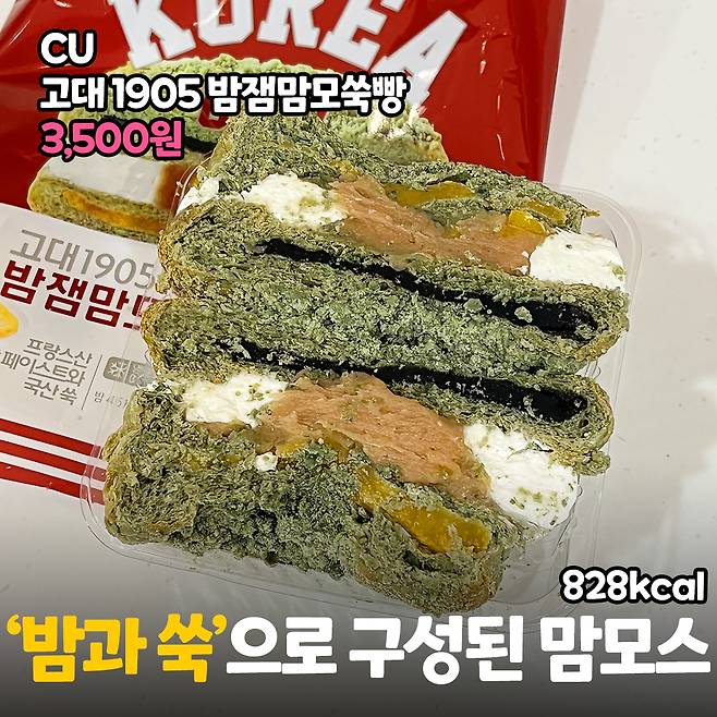 이번 고대빵은 할매입맛을 가지신 분들이 혹 할 것 같은데요. 왜냐하면 밤, 쑥, 흑임자 거기에 단호박까지 꾹꾹 담아 놓은 맘모스빵이거든요! 밥심도 한 할미입맛 하는데 이 조합들이 한 번에 먹었을 땐 어떤 조합으로 느껴질지 매우 궁금해지더라구요~