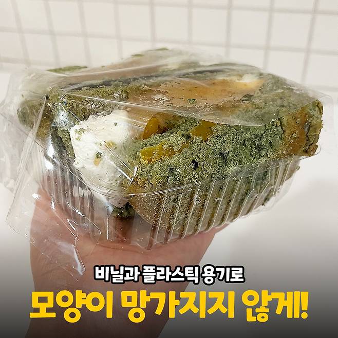 봉지를 뜯자마자 플라스틱 용기와 비닐이 같이 나오더라구요~ 비닐을 덮어줌으로써 크림이 봉지에 묻지 않아서 좋았고 플라스틱 용기 덕분에 모양이 망가지지 않았어요!
