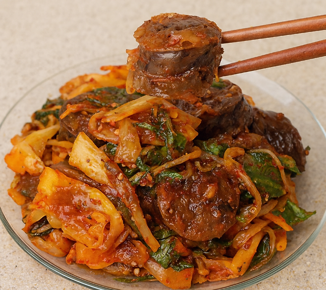 남은 순대를 활용한 이 레시피는 고추장 양념에 들깨가루 두 스푼을 넣어 고소하고 깊은 풍미를 더한 순대볶음입니다.
