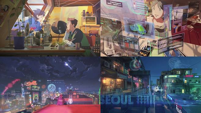 그중에서도 ‘지금 우리가 살고 있는 현실이 과거가 된다면?’이라는 상상으로 구현된 2050년 서울의 모습이 흥미롭다. 주요 배경이 되는 세운상가부터 ‘힙지로’ 을지로와 광화문, 서울역사 등 너무나 익숙한 공간들에 홀로그램, 네온 같은 그래픽 디자인과 사이버 펑크 스타일을 더해 매력적인 비주얼을 완성한다.