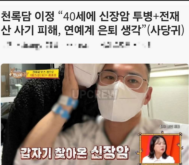 그런 상황 속에서 건강까지 무너졌다. 그는 정기 건강검진을 통해 신장암 진단을 받았고, 빠르게 수술과 치료에 들어갔다. 다행히 조기에 발견된 덕분에 치료는 비교적 잘 마무리되었지만, 암이라는 단어가 주는 무게는 결코 가볍지 않았다. 그는 "그 순간, 내가 살아 있는 것만으로도 다행이라 느꼈다"고 털어놨다.