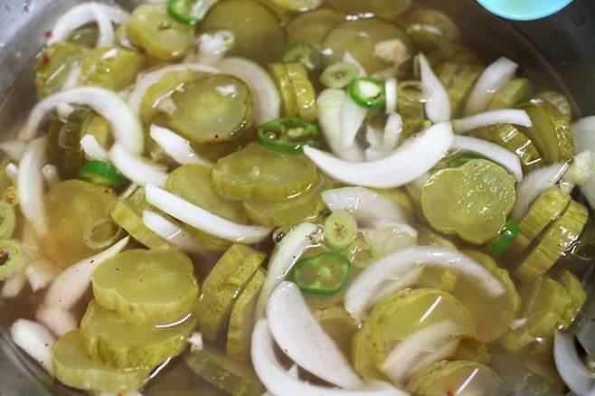 오이지의 아삭한 식감, 살짝 퍼지는 새콤한 국물, 그리고 뒷맛을 정리해주는 은은한 감칠맛까지. 개운 하고 시원해서 맛있습니다.