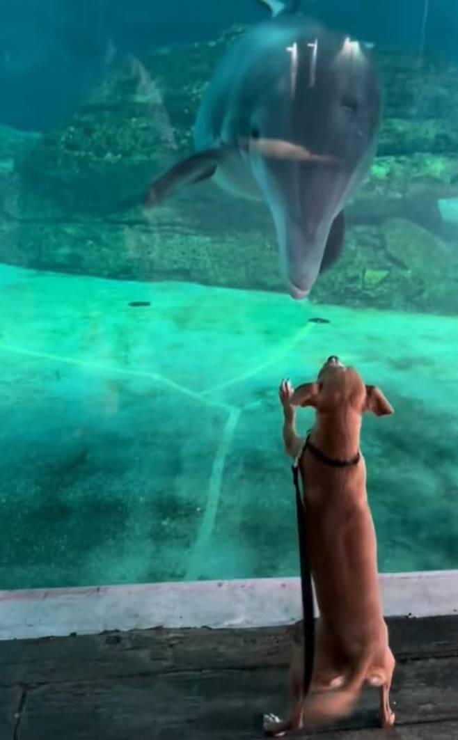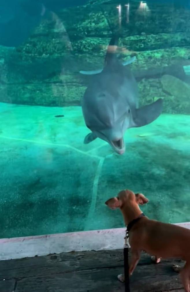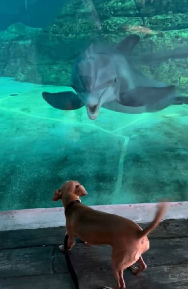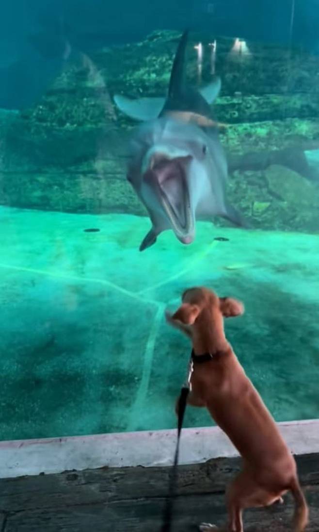 여기 많은 사람들의 호기심을 단번에 사로잡은 영상이 있습니니다. 바로 치와와 강아지와 수족관 속 돌고래가 유리창 너머로 마주한 순간인데요.
