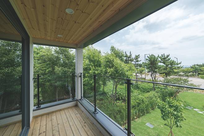 포치에 유리 난간을 설치해 탁 트인 전망에 막힘이 없도록 계획했다.