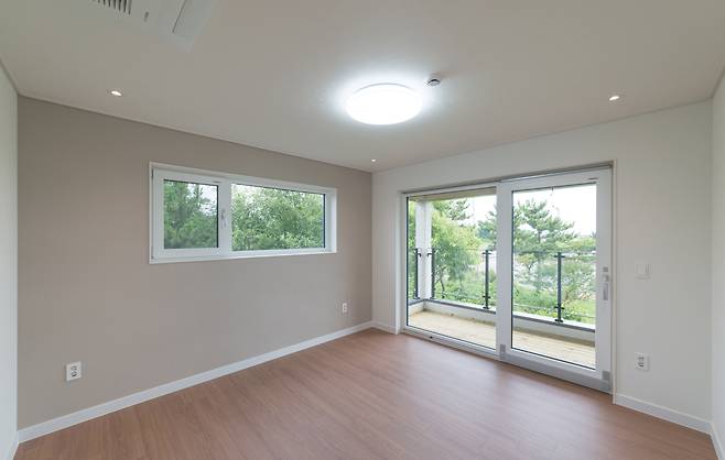 두 개의 벽면에 크기와 모양이 다른 두 개의 창을 계획했다. 이중 정사각형 모양의 큰 창은 마당을 향해 조망하기 편리하고 다른 벽면의 가로로 좁고 길게 낸 고창은 더 많은 채광을 확보하는데 용이하다.
