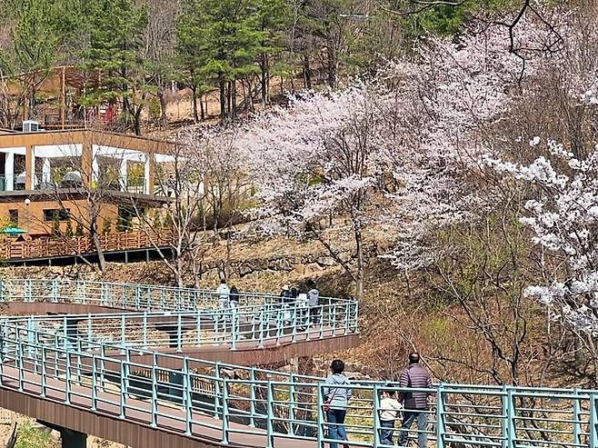 또한, 곡선형 짚와이어와 에코라이더 등 산림레포츠 시설도 마련돼 봄꽃을 배경으로한 색다른 체험도 가능하다.