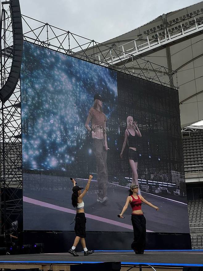 특히 시선을 끈 것은 허리를 감싼 손 아래로 드러난 극도로 슬림한 ‘개미허리’. 크롭탑 아래로 드러난 라인은, 무대 준비에 쏟아부은 노력이 느껴질 만큼 인상적이다.