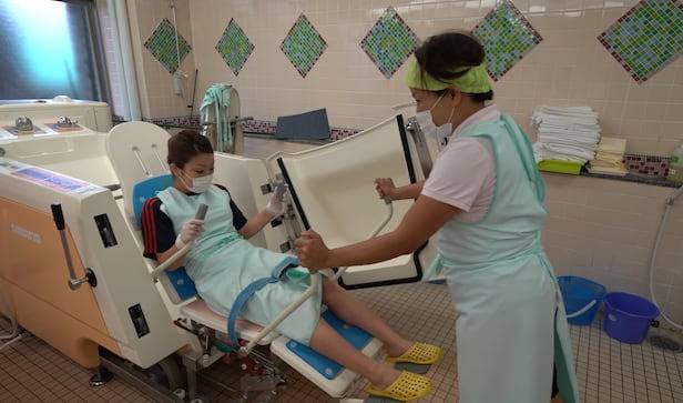 일본 노인들은 실버타운에 입주하는 것을 당연시하는 분위기라고 신 교수는 전했다. 그는 “살던 집에 애정이 큰 경우에도 낙상 사고로 혼자 식사하거나 목욕하는 데 어려움을 겪고 나면 실버타운의 필요성을 절감한다”며 “특히 대부분 실버타운이 기계 보조 목욕시설을 갖추고 있어 만족도가 매우 높다”고 말했다. 휠체어에 앉은 채로 특수 제작된 욕조에 들어갈 수 있고, 누운 상태로 편안하게 목욕을 할 수 있는 게 장점이다.
