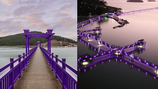 퍼플섬은 이름처럼 모든 것이 보라색이다. 전남 신안군 안좌면에 위치한 반월도와 박지도가 그 주인공이다. 건물 외벽, 다리, 정원까지 보랏빛 테마로 꾸며져 있다. 단지 색감만으로도 이국적인 풍경을 연출한다.