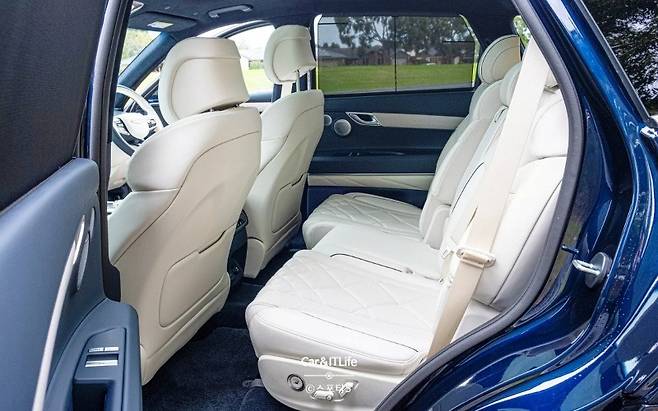 2열 시트 역시 열선 및 통풍 시트, 전용 온도 조절 구역, 창문 가리개 등 다양한 편의 사양을 제공하여 편안함을 더했습니다. 3열은 다소 좁지만, 뒷좌석 전용 온도 조절 장치를 설치하는 등 세심한 배려가 돋보입니다.