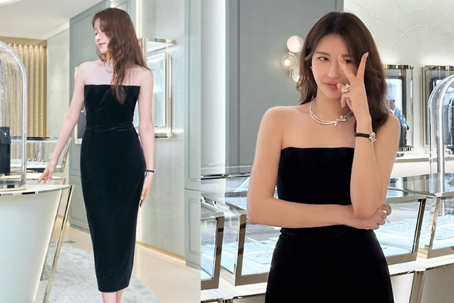 이지아 님의 최근 세련되면서도 고급스러운 매력이 가득한 스타일을 보여줬어요. 튜브탑 블랙 드레스를 중심으로 몸매를 강조하는 디자인과 화려한 액세서리들이 완벽한 조화를 이루며 그녀의 미모를 한층 돋보이게 했죠.