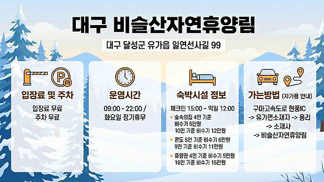 전국 160개 휴양림 중 당당히 평가 1위를 차지한 이곳은, 100대 명산의 품격과 가성비 숙소, 환상적인 얼음 축제까지 모두 갖춘 '비슬산자연휴양림'입니다. ✨🏔️