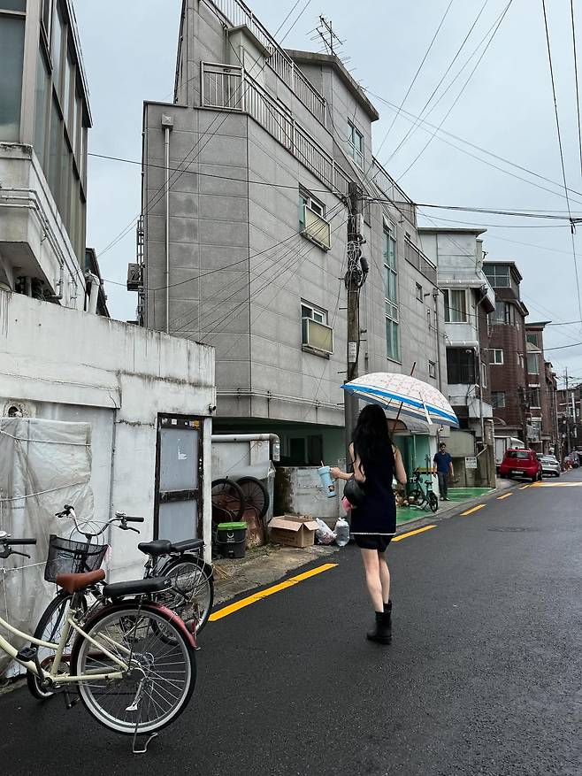 수지가 19일 인스타그램(@skuukzky)에 장마철 골목에서 찍은 사진을 공개했다.