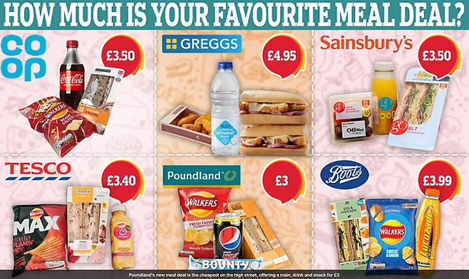 샌드위치 + 스낵 + 음료 = 약 £3~£4