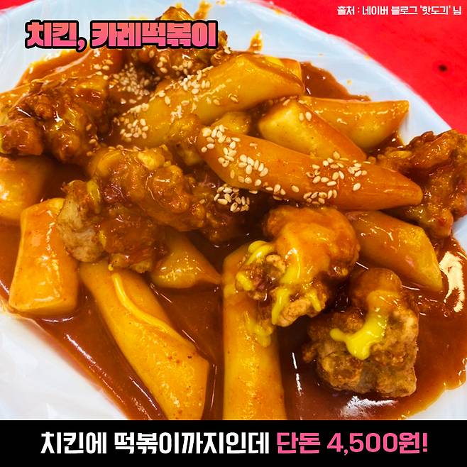 카레 향의 떡볶이에 치킨이나 순대, 튀김 등 여러 가지 토핑을 버무려 먹을 수 있어요.찍먹인 분들 오늘만큼은 부먹으로 살자구요.