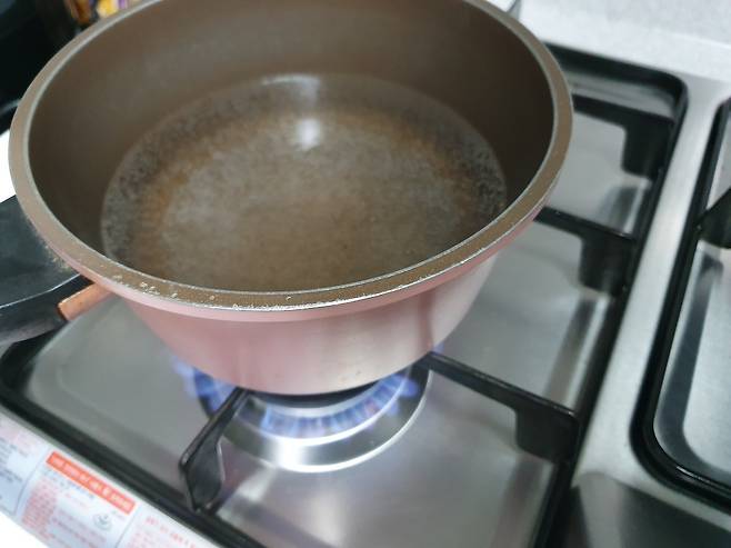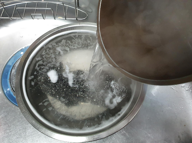 물을 끓여서 뜨거운 물을 준비해 주세요.