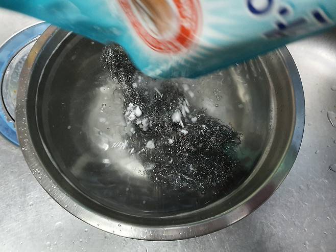 양을 철 수세미 위에 뿌려주시고요.