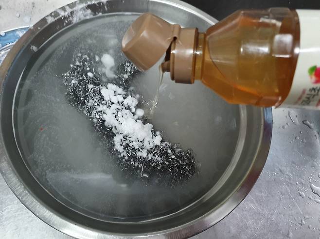 식초를 이용하여 철 수세미도
