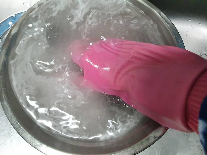 고무장갑을 착용하여 녹여주세요.