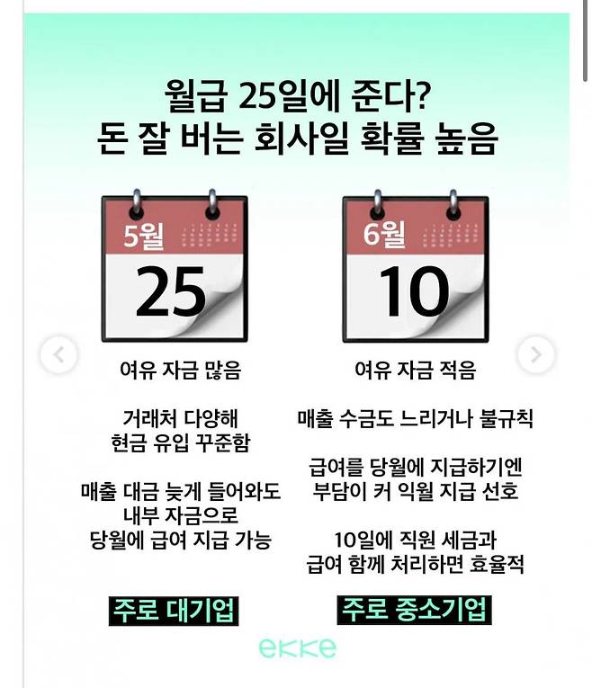 반면 중소기업은 월급날이 유동적인 경우가 적지 않습니다. 회사 사정에 따라 하루 이틀 늦어지거나, 명확한 날짜가 정해져 있지 않은 곳도 있습니다. 월급날이 다가오면 자연스럽게 직원들 사이에서 언제 들어오느냐는 말이 오갑니다. 이 자체가 회사의 자금 흐름과 안정성을 보여주는 신호입니다.