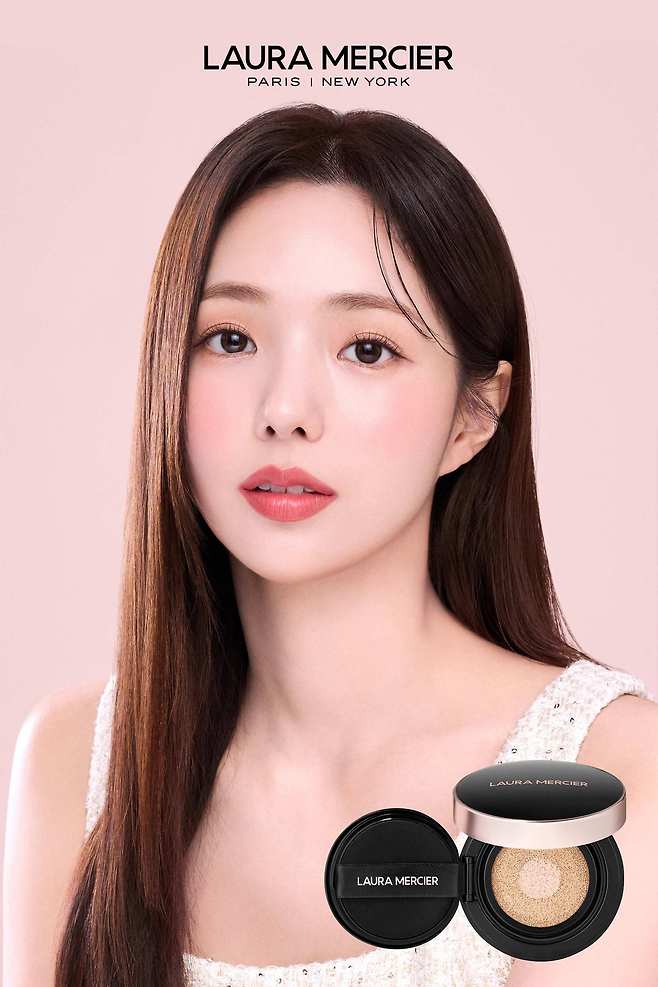 첫 단계인 베이스에서 사용한 제품은 로라 메르시에의 ‘플로리스 뤼미에르 래디언스 퍼펙팅 톤 업 쿠션’. 피부에 다이아몬드 광채를 선사하는 제품으로, 가볍게 밀착되는 동시에 높은 커버력으로 피부의 톤과 결을 매끄럽게 표현해준다. 특히 지속력이 높아 야외 활동이 늘어나는 봄, 여름철에 활용도가 높다. 특히 쿠션 중심부에 있는 핑크 코어가 밸런스를 맞추기 때문에 웜톤, 쿨톤 할 것 없이 모든 피부톤에 맞춰 즉각적인 화사함을 연출한다.