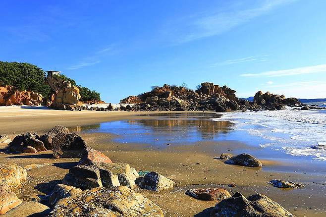 마시안해변은 선선한 바람을 누리며 여름철 해수욕과 갯벌 체험을 할 수 있는 해수욕장입니다. 3km 길이의 긴 해변 길을 거닐며 연인과 로맨틱한 산책을 할 수 있고 부드러운 모래사장과 울창한 소나무 숲이 조화를 이루는 곳입니다.