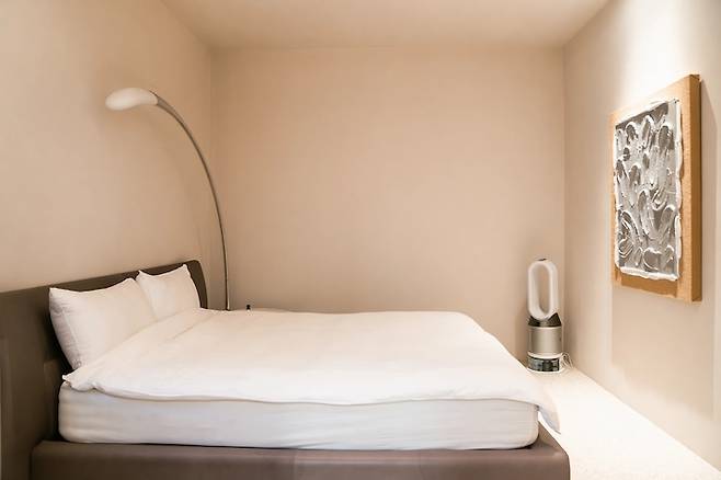 침실은 심플하면서도 미술 작품에 포인트를 주어 아늑한 공간으로 연출하셨더라구요. 군더더기 없이 깔끔한 침실이 취향저격이었어요. 그리고 이 침실 옆엔 숨겨진 공간이 있습니다!