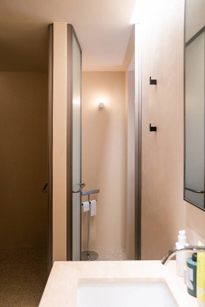 세탁실엔 문이 있어서 보이지 않으니 더 좋더라구요. 욕실 입구 왼편엔 샤워실과 화장실이 분리되어 있었는데 이런 디테일이 이 공간을 더 멋스럽게 만들어 주더라구요.