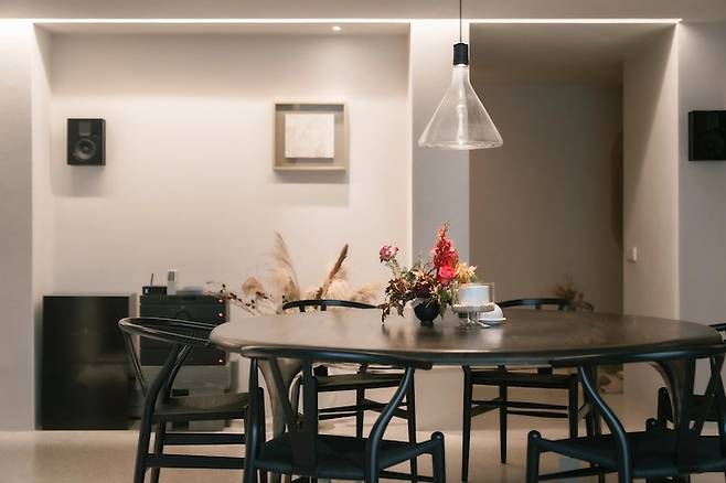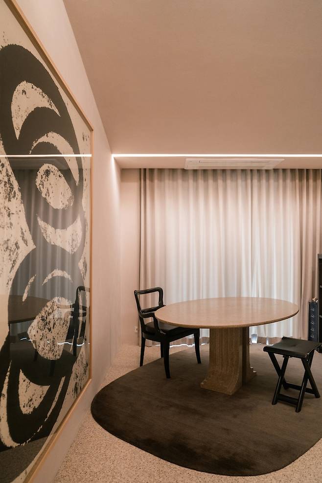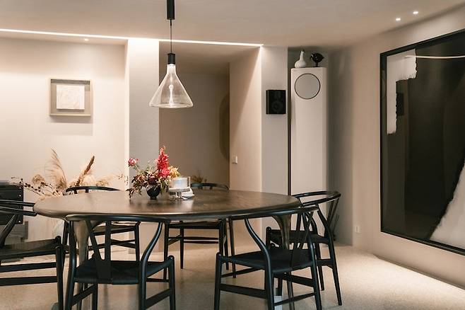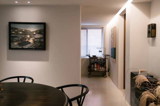 큰 원탁형 테이블을 기준으로 앞, 뒤 벽에 그림이 걸려져 있는데 앉아있다 보면 집이 아니라 갤러리에 있는 기분이 들어서 너무 좋았어요!